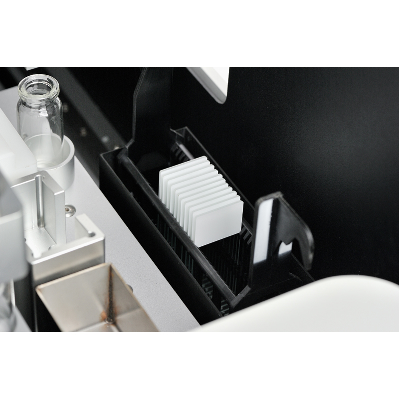 實(shí)時(shí)智能檢測(cè)、定位裝置,可隨時(shí)取出已封好玻片,無(wú)需暫停程序,并可查看剩余蓋玻片數(shù)量